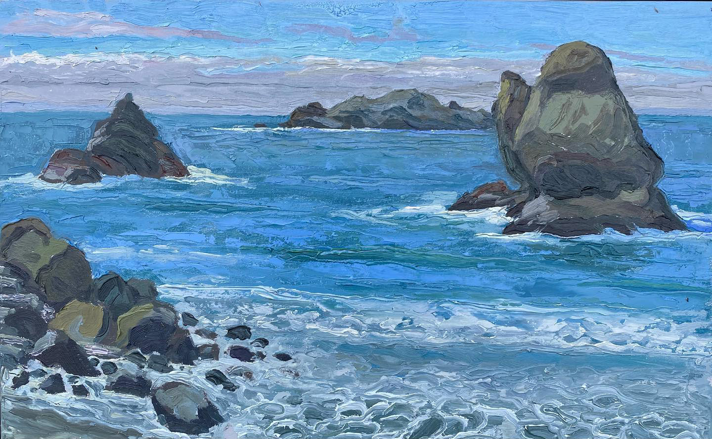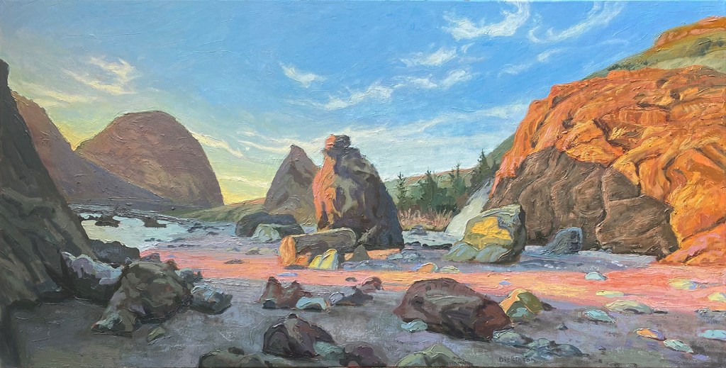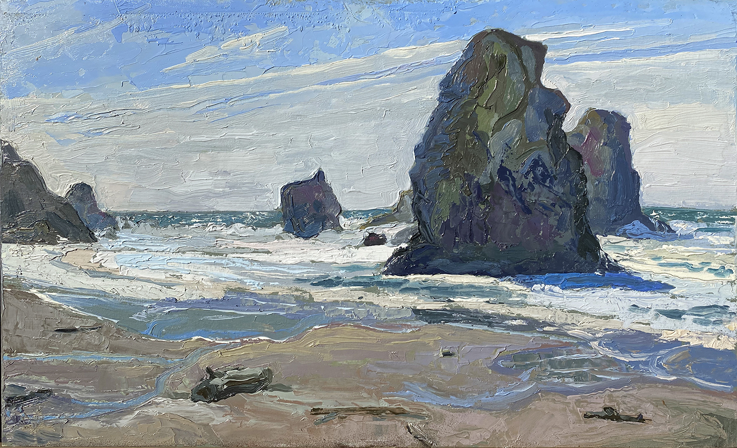 Plein Air Klamath River, oil on panel, 2020Plein Air Near Sisters Rock, oil on panel, 2020Plein Air Sisters Rock, oil on panel, 2020Plein Air Mt. Humbug from Port Orford, oil on panel, 2020Plein Air Hooskanaden Beach, oil on panel, 2021Plein Air North Boardman State Park, oil on panel, 2021Plein Air Lone Ranch Beach, oil on panel, 2020Mount Humbug, oil on canvas, 24 x 48, 2021Plein Air China Beach, oil on panel, 2021October at Sisters Rock, oil on canvas, 24 x 48, 2021
