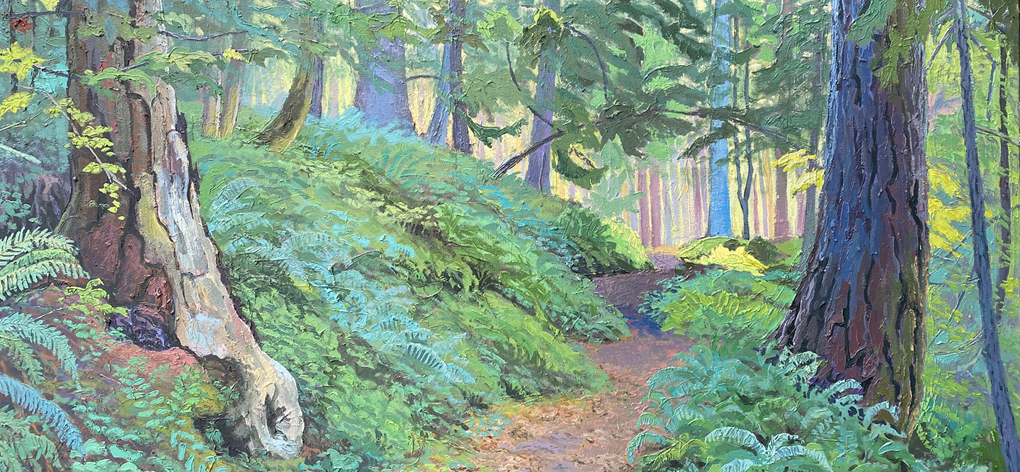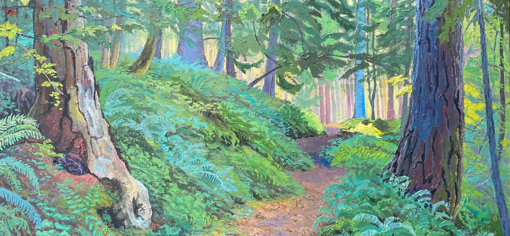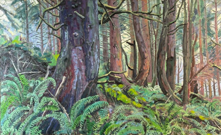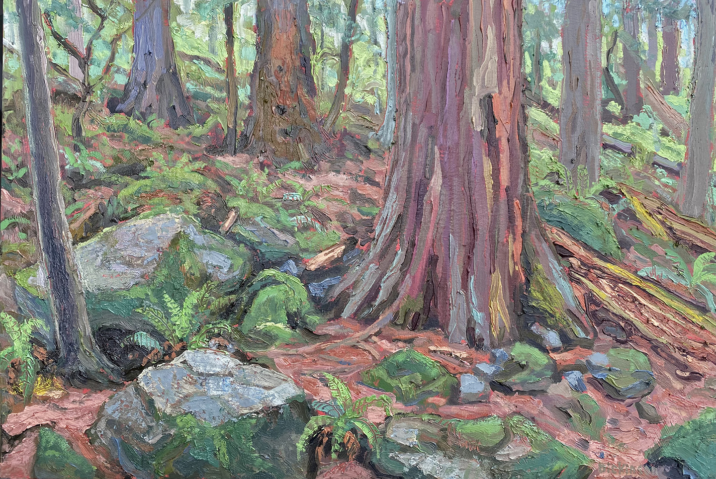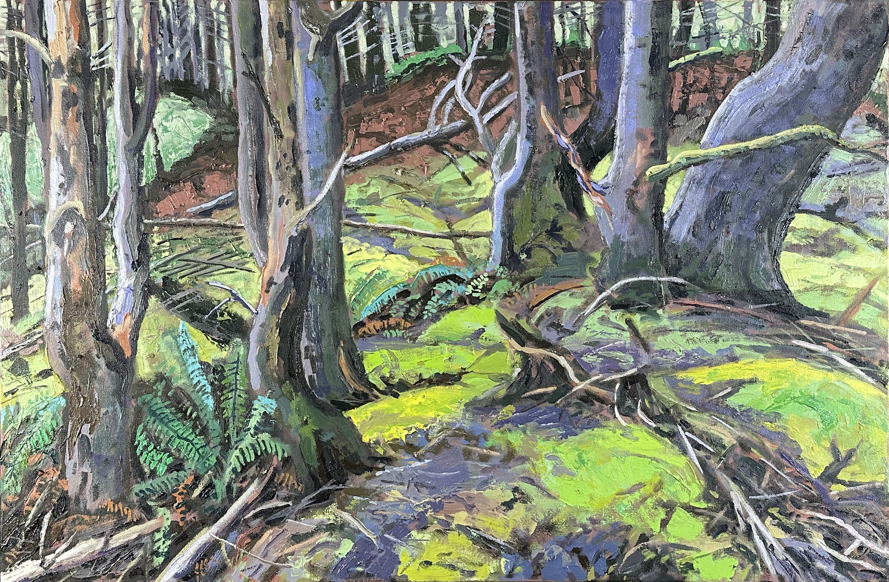 Shinrin-Yoku For Sharon Shaw, Port Orford Heads, 24 x 32, oil on canvas, 2022City Park Plein Air, 18 x 24, oil on panel, 2020Noon, My Sister’s Birthday, South Whidbey Island State Park, oil & wax on panel, 2020JB’s Shinrin-Yoku Trail Run, oil on canvas, 24 x 48, 2021Coastal Elder, Manzanita, oil on panel, 2020Plein Air by Deception Pass, 16 x 24, oil on panel, 2022Arcadia Grove by Manzanita, 24 x 35, oil on linen, 2022Elwha Bank Near SR 112, 20 x 36, Oil on linen, 2022