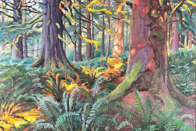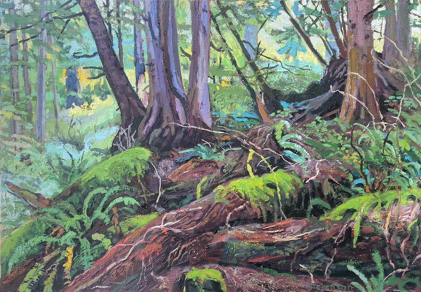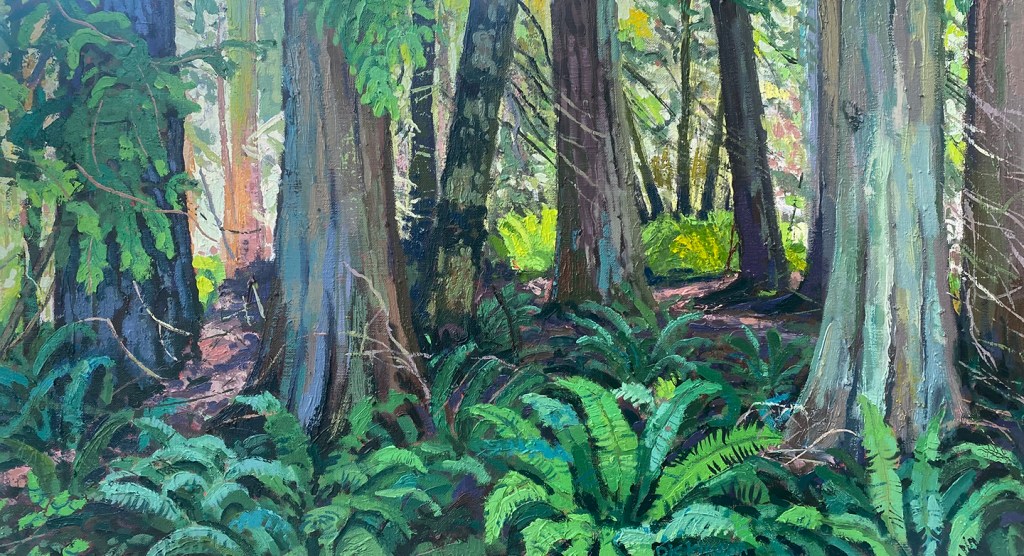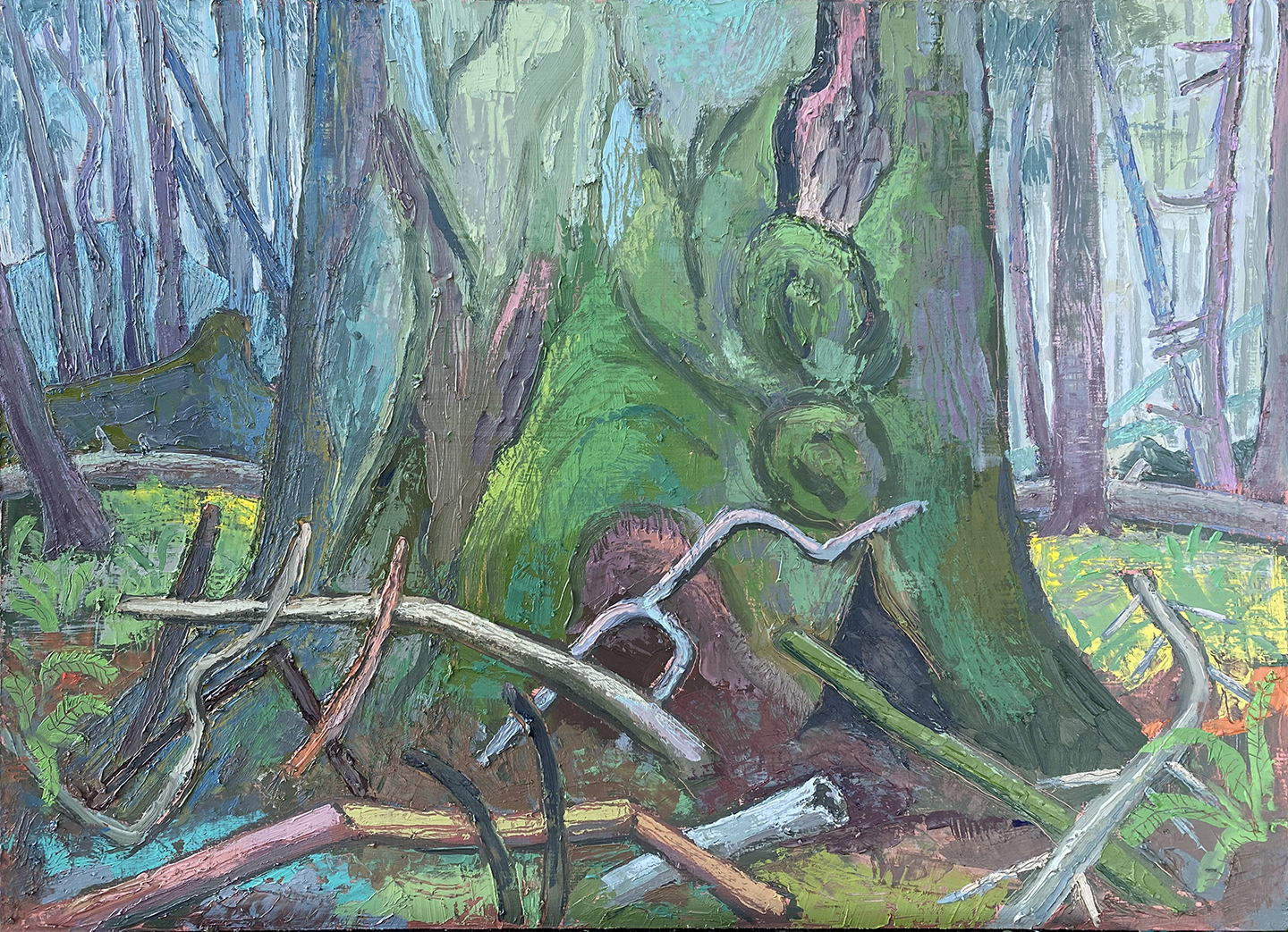 Shinrin-Yoku For Sharon Shaw, Port Orford Heads, 24 x 32, oil on canvas, 2022City Park Plein Air, 18 x 24, oil on panel, 2020Noon, My Sister’s Birthday, South Whidbey Island State Park, oil & wax on panel, 2020JB’s Shinrin-Yoku Trail Run, oil on canvas, 24 x 48, 2021Coastal Elder, Manzanita, oil on panel, 2020Plein Air by Deception Pass, 16 x 24, oil on panel, 2022Arcadia Grove by Manzanita, 24 x 35, oil on linen, 2022Elwha Bank Near SR 112, 20 x 36, Oil on linen, 2022