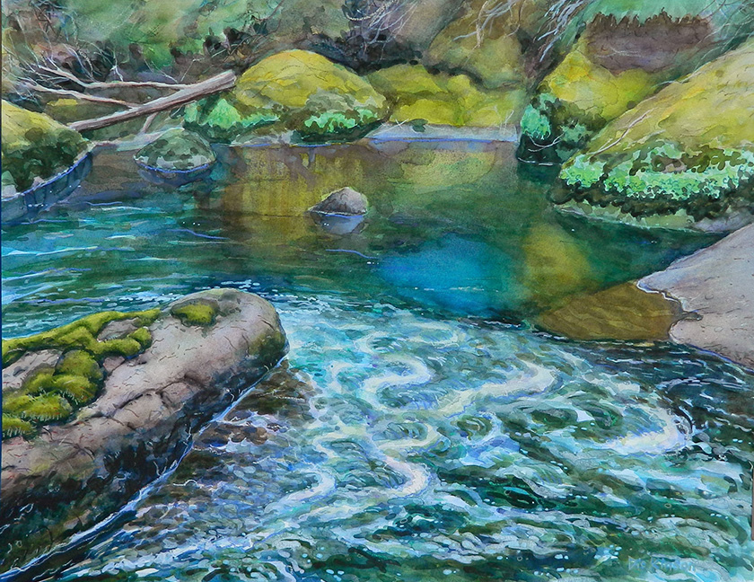Hamma Hamma Rocks and Pool, 2012, watercolor, 18 x 24