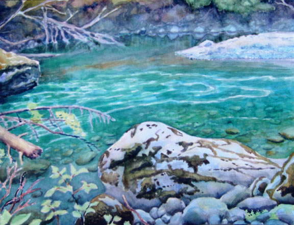 Near the Bear Wire, Canyon Camp, Elwha, 2008, watercolor, 16 x 20